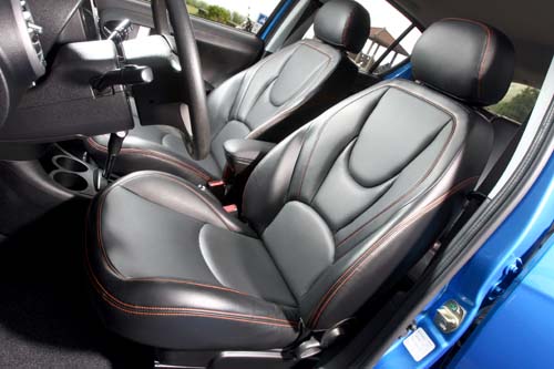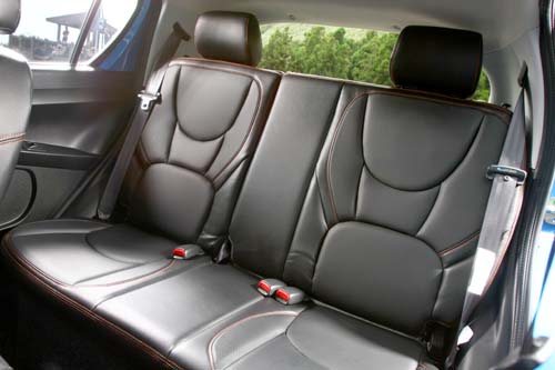 | 自排版試駕車所額外選配的是黑色皮質座椅,搭配良好的椅型設計並擁有橘紅色縫線,質感相當出色 ;其基本行李廂容積為205公升,將分離式後座椅背翻倒前傾,則可獲得更大的載物容量。 |