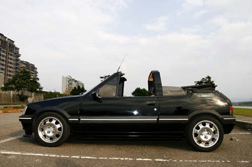 | 205雖然已經是退役車款,但其改裝潛力卻仍然大得驚人,不論是腹內強化或落引擎,由於法系車零件相容性高,改裝起來更是如魚得水,圖中這輛205CC就是移植405 GT 1900 c.c.引擎的改裝實例。 |