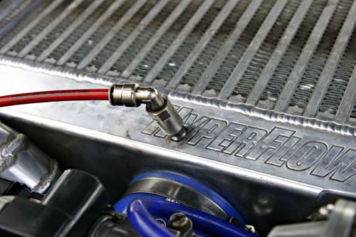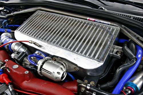 | 這組HKS上置加大型進氣冷卻器對應輕、中度的改裝相當適合,但對於此車如此大幅度的改下就必須更換成前置系統比較恰當。 |