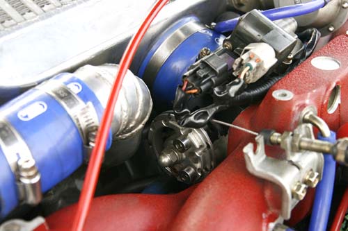 缸體強化之後引擎上座也跟著一併升級,燃燒室因為缸徑變大所以必須跟著修改,此外為了增加引擎的吞吐量因此換上了JUN 272度、揚程11.2mm凸輪軸。在供油部分,為了餵飽這具怪獸級的引擎,因此換上了HKS 1000c.c.噴油嘴,並輔以二顆韋伯255L汽油泵浦來提供穩定的供油。周邊方面則是搭配了HKS上置加大型進氣冷卻器與SQV進氣洩壓閥,然而讀者一定覺得很奇怪,改這麼大進然還是維持上置進氣冷卻器設定,那是因為原本的改裝是希望讓渦輪蓄壓反應快,不過以目前的改裝幅度來看,日後還是必須改成前置冷卻器才比較恰當。