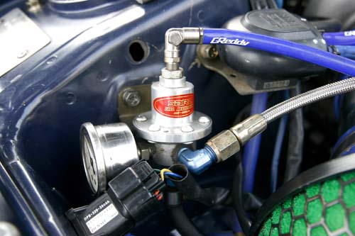 | 為了提供本車HKS 1000c.c.噴油嘴穩定的供油量,因此Sard的汽油調壓閥絕對是不可或缺的改裝品。 |