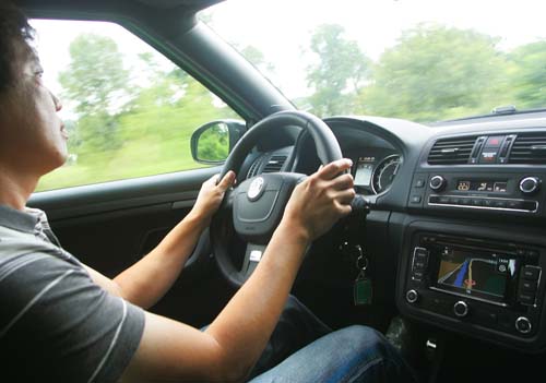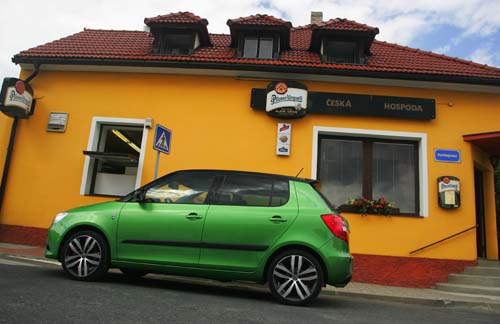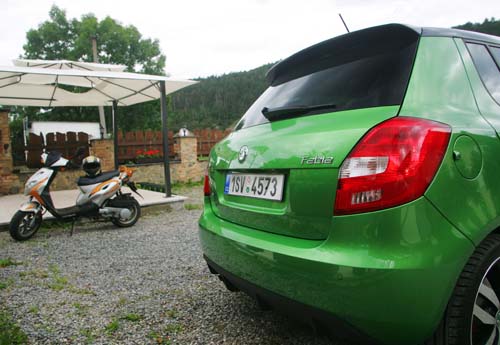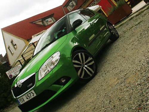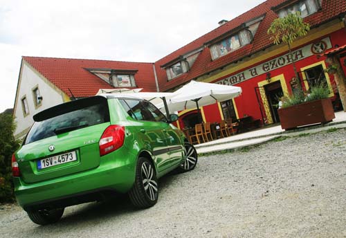 | 這次試駕的Fabia RS車身顏色採用的是今年Skoda Motorsport廠隊的綠、黑主調:Rallye Green金屬綠搭配黑色的車頂、A柱和B柱,充滿著濃烈的捷克風味。 |