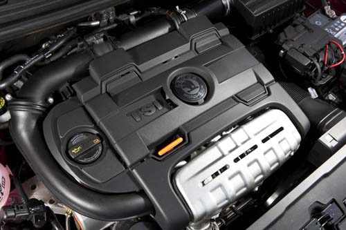 當然,如果夠細心也是可以發現其增壓的線索。當在極低轉、由怠轉到蠕行時,因為負荷較大,就有些微的嚙合作動感。其次,這具引擎有兩個發力點。一個是在約2000轉之間,另一個則約在5000轉。在越過2000轉時,轉速上升變快,直到五千多轉,整個動力輸出有很線性的表現,雖然並不是特別的驚人,但在這段轉速域裡,搭配絕頂聰明的七速雙離合器DSG自手排變速系統,在試駕的過程中,從未有感覺到力量不足;另一個五千多轉的發力點,則很類似以往的渦輪增壓,那便是貼背感了。當攀過5000轉時,可以明顯感到引擎的力量感,將你的背往後拉,且引擎聲隨著轉速的提升漸漸加大,聲音是結實的且很有力量感,絕不是以往廉價小排量引擎的那種粗糙運轉聲浪,且這種聲音是很會激勵駕駛者的,確實教人過癮。