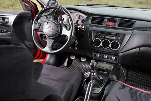 車內外的Lancer Evolution MR銘牌說明了本車與一般版本的不同。