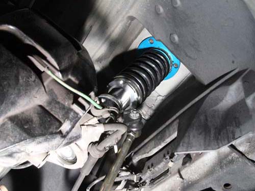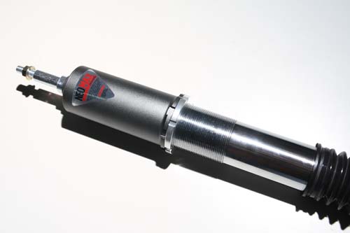 | 西維思發現許多歐系車懸吊設計都與日系車不同,例如後避震器塔頂沒有中央開孔就是一個例子,於是圖中這種倒插式設計便因應而生,並改變阻尼軟硬調整旋鈕的造型,以對應這些車種。 |