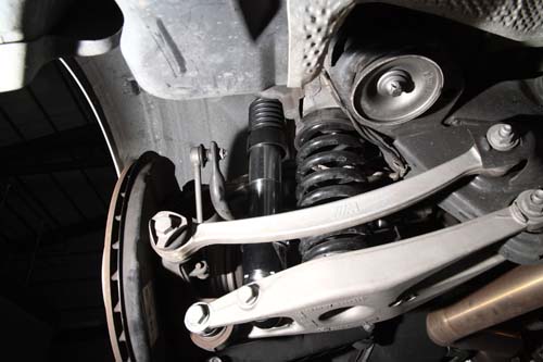 | 圖為E92 M3的後懸吊,結構看似相當簡單,卻處處可見好料上身,而為因應避震器塔頂的設計,且兼顧後續容易調整的便利性,阻尼調整旋鈕已改在筒芯上。 |