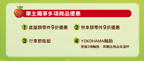 4.YOKOHAMA輪胎(更換2條輪胎,即贈送精品保溫杯)