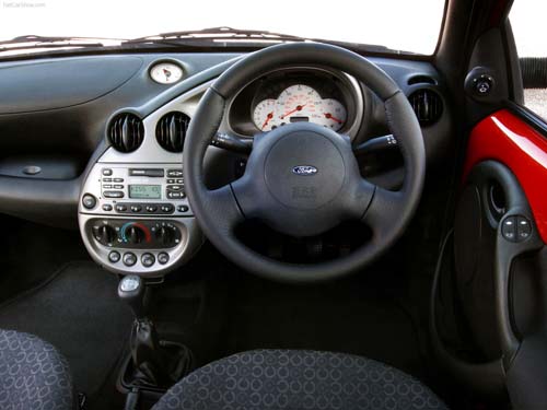 Ford的美意是原塑料就不怕小刮小撞(像一些黑保桿的小黃),特色之餘亦兼顧實用。這四片頁葉子板就算要更換起來,因省卻了最令人頭痛和費時的上漆作業,也是便宜方便。而葉子板下的四個車輪,位處車體四角末端,Ka在操控和空間上的過人表現,正因如此。內裝方便,Ka更是比當年一堆小車如Peugeot 106、Fiat Punto等小車更見特色,如車身一體同色的門板、海螺水滴狀的中控台、量身訂造的音響、設計別趣又實用的冷氣出風口等等,均看得出負責的設計師不是上班打卡交功課了事,而是用心用意去要把Ka做好。