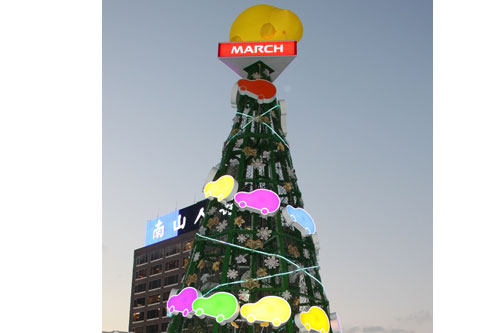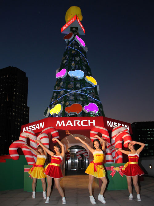 裕隆日產在今年聖誕節前夕,秉持著愛地球的環保概念,捨棄傳統砍伐樹木的製作方式,改選用多種可回收材質,並以可愛的MARCH Logo為造型,加上LED節能燈泡作為裝飾,打造國內獨一無二、總高度超過12米的MARCH環保聖誕樹,不僅外觀設計可愛討喜,同時設計一條幸福長廊貫穿底座,內部設立「快樂之光」許願牆,讓大家能夠一同許下心願、幸福合影,迎接獨一無二的歡樂聖誕。