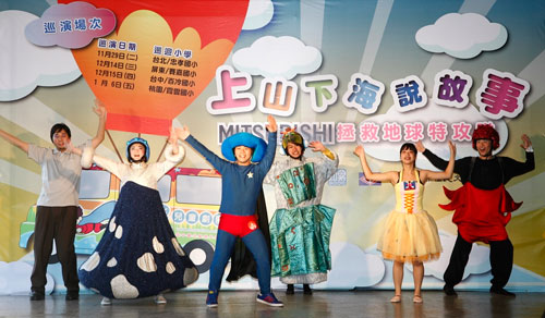 「上山下海說故事-MITSUBISHI拯救地球特攻隊」公益巡演將從台北出發,沿著西半部巡迴開演,11/29台北忠孝國小、12/14屏東賽嘉國小、12/15台中白冷國小、1/6桃園霞雲國小,歡迎偏鄉部落喜愛聽故事的大小朋友一起來看戲。