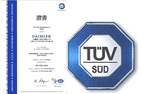 台灣賓士日前獲得由全球領先的德國專業認證機構TÜV南德意志集團頒發的VDA 6.2證書,與區域總部-戴姆勒東北投資有限公司一同成為亞洲首家獲得此項認證的汽車公司。 VDA6.2全球汽車服務業管理標準是ISO 9001品質標準基礎之上的補充標準,通過對汽車銷售、行銷、售後服務、零件業務以及物流各環節的服務品質管理系統進行透明化的規範,進而促進公司運營效率,最終提高顧客滿意度。