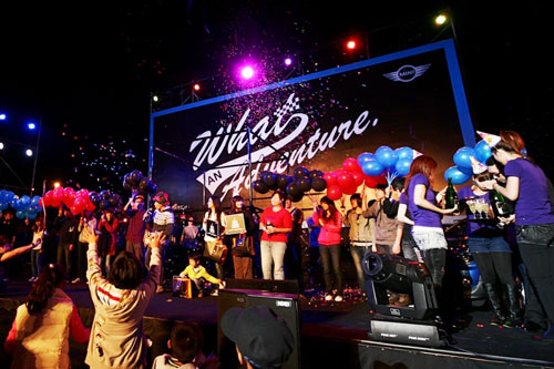 隨著天色漸暗,MINI粉絲的活力可沒有因為下午的滿檔行程而有半點減退,在MINI粉絲開此享用精緻露天晚宴的同時,MINI團隊率先祭上大驚喜,邀請三位當天生日的粉絲登上舞台,讓上千位粉絲一同慶生分享喜悅! 緊接在生日驚喜後的是MINI精心企劃的英倫輕搖滾Live band演出與極限跑酷秀,不間斷的視覺與聽覺饗宴將MINI粉絲的熱情喝采推到最高峰! 當MINI團隊宣布即將公佈MINI DAY 2011 Super Star票選前三名得主時,舞台下方更響起一片歡呼,上千位MINI粉絲屏息以待獎落何處-來自高雄的車主,在原本就加裝JCW改裝品的紅色MINI Cooper S上貼滿賽車風格車貼,超級熱血的風格高票獲得全場青睞奪得第一寶座;亞軍是經典Mini Clubman車型,渾身經典復古元素,也引起粉絲一片好評;獲得季軍的則是來自台北的車主,綠色MINI Clubman以局部金黃色車貼綴飾,展現出獨特的個性品味。勇奪獎項的車主們雀躍抱回大獎,但最令現場粉絲感動的是,現場近400台特別打扮的MINI,每一台都代表著車主獨一無二的個人風格,驕傲地說出身為MINI世界一員的榮耀! MINI DAY 2011再一次地成功齊聚上千位車迷,團結一致展現創意十足的MINI精神!