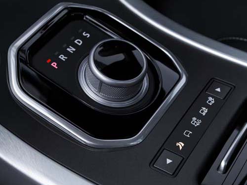 | 全車系除標配方向盤換檔撥片外,同時也採用較為獨特的旋鈕式排檔座設計,位於排檔座後方的則是地形反應系統的選擇按鍵。 |