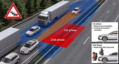 | 現代車輛的電子系統不僅能預防前方撞擊,對於後方的追撞也有預測與對應的能力。 |