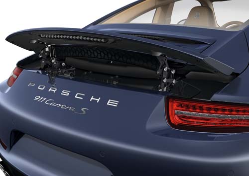 | 全新的尾翼造形設計令人驚艷,它有效提昇了車輛在高速行駛時的車尾下壓力,設計上的主要變化在於尾翼刻意移至車尾的最末端,寬度與面積也比過去的911更大;另外,角度可變的設計也更能符合不同車速下對下壓力的需求。 |