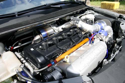 供油系統方面,由於Tuner認為Focus原廠的汽油泵浦足敷使用,因此僅將噴油嘴換成Escape 2.3L原廠部品。此外,節氣門依舊維持原來的電子式設計並未更動,而原本的塑鋼歧管則以御用的Cosworth Focus專用品替代,藉以提昇渦輪化後的進氣效率。
