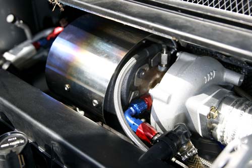 不過有個別具巧思的小改裝筆者在Tuner的解說下才發現到,那就是自製的汽油冷卻裝置,這個改裝是將供油管路在進入油軌之前的一段,連接到冷凝管路上,藉著低溫來冷卻汽油溫度,讓燃燒效率更佳!