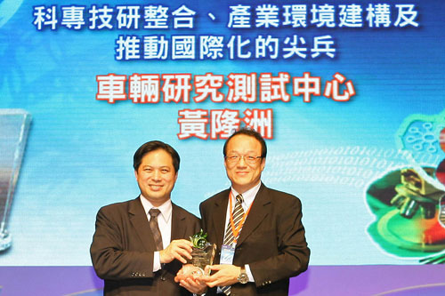 執行經濟部技術處「法人科專計畫」多年來,ARTC繼去年獲得技術成就獎後,今年再一舉拿下兩項大獎,分別是科專貢獻獎黃隆洲總經理、最佳新人獎許展維博士。搬遷彰濱後的車輛中心在黃隆洲的帶領下,將129公頃的黃沙之地建設成一流的車輛研測平台,不但在科研創新上屢有突破,並以科專聚焦於智慧、安全、光學、潔能及底盤五大領域,發展出20多項科研成果,對業界技轉成果豐碩。同時引導產業趨勢,將實驗室不斷升級至國際認可等級,讓車輛中心服務涵蓋整車、零組件與車電產業,對產業技術精進、產品外銷與自主品牌研發直接做出貢獻,因此以「科專技研整合、產業環境建構及推動國際化的尖兵」的表現拿下科專貢獻獎。