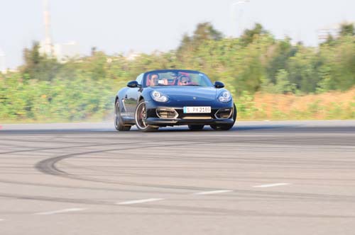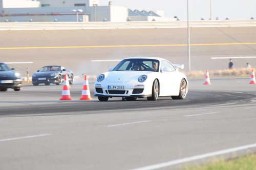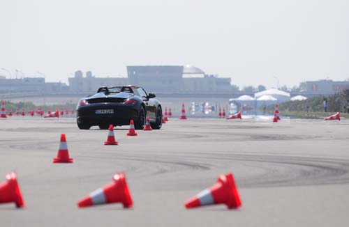 以椎筒在寬闊的地面上擺出由小S型車道及大型S車道所組合而成的高速車道,透過教練前導車的帶領,讓學員以較高的平均車速進行S彎的操駕,並藉由加速出彎與減速入彎的動作,體驗中置引擎後驅、後置引擎後驅與後置引擎四驅各自不同的重心轉移特性及動態表現,這項首度登場的課程讓此次活動的所有參與者充分體會到Porsche優異的操控表現,也是此次最受歡迎的課程。