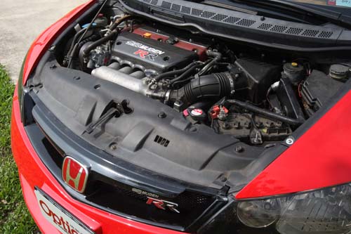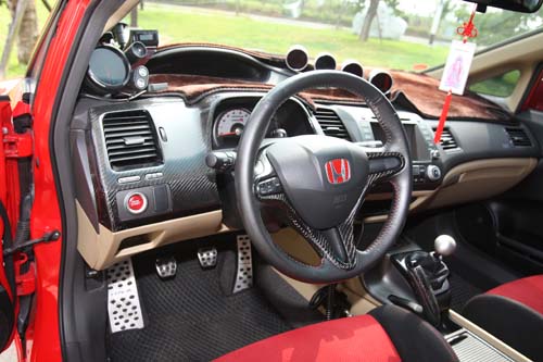 八代Civic推出至今已有一段時日,植入K20A的案例也不斷提出,大部分是以動力相近的DC5 Type-R來進行動力移植。這輛由尚皇改裝的八代Civic所移植的引擎並非DC5的K20A,不是日規版FD2的紅頭引擎,而是美規SI版200hp白頭引擎。換裝K20A過程中,會有些小問題,引擎腳位置差異頗大,不過這些都難不倒改裝店家,經過丈量後,店家自行製作引擎腳對應,解決安裝引擎問題。美規SI使用與FD2相同電子系統,若直接移植與原本系統結合,勢必會有許多問題,不過本車採取完整移植線路與儀錶的方式,因此順利將引擎植入台規車體中。