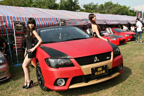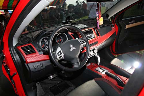 碳纖維貼紙在國內已不是新鮮玩意兒,不過先前見到的都是黑色貼紙,像這部車這樣貼紅色的碳纖維貼紙倒是第一次看到,而且連內裝都貼滿,整部車散發出一種很奇特的光澤度,吸睛度十足。