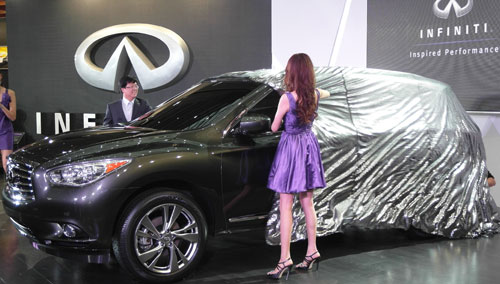 INFINITI 展出全亞洲首度現身的大型7人座跨界休旅車JX Concept,這輛明年6月量產上市的車型,搭載全球首創安全科技-盲點後撞預防系統 (Backup Collision Intervention),讓消費者感受到INFINITI創新與挑戰的品牌精神。