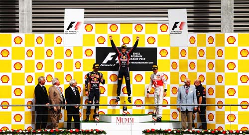 很可惜──暑休時所期待看到的反攻,如今似乎是完全落空──看來我以後還是少用預感來寫文章為妙,朋友也常常勸我少做預測的事情,說是我考量的因素太多,反而不如人家用直覺預測來得準,這就怪了:為求預測精準,我只惟恐考量的因素不夠多,結果想愈多卻愈不準?難怪我從來不玩F1 Fantasy。暑休之後的比利時和義大利這兩站,全由S.Vettel的排位第1到決賽優勝作收,但卻密集印證他的「起跑」功夫並不優秀──兩站都在第1彎道分別被N.Rosberg和F.Alonso超越,這是Red Bull兩位車手普遍都有的罩門,常常要到後面才靠著休停策略以及車子高穩定的持續性能來扳回;其中較差的又屬M.Webber,他的起跑簡直狀況百出,更包括常常遇到KERS加速失靈或是誤啟動防熄火裝置,若說是車隊婊他,那也未免婊得太密集了?
