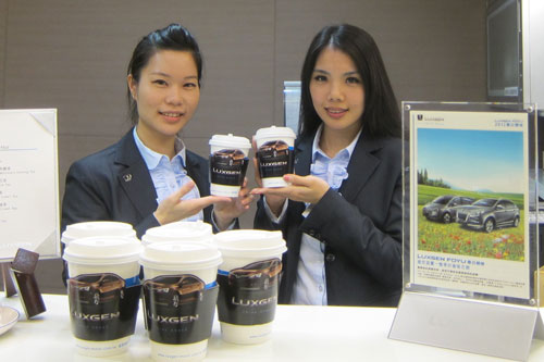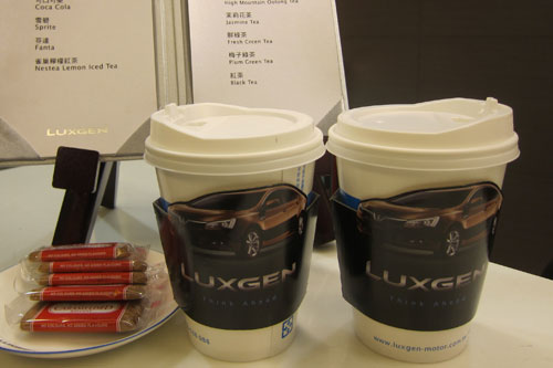 LUXGEN以「差異化策略」在產品、銷售及服務上受到消費者認同與好評,繼導入iPad2提供車主免費使用之外,在通路差異化方面大展創意,領先業界推出LUXGEN 外帶杯服務,讓所有前往汽車生活館的顧客及車主皆可享受LUXGEN冷熱飲外帶服務;而特別設計的專屬外帶杯及LUXGEN5 Sedan杯套,讓車主在寒冷的冬天可以手持一杯LUXGEN精心調配的熱咖啡或清香熱茶,入口的暖意保證直達心底。LUXGEN自12/23正式推出外帶杯服務以來,十分叫好又叫座,車主們皆給予外帶杯服務高度讚賞,更對於LUXGEN「預先設想、超越期待」的服務精神大表讚許。