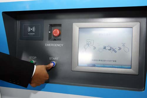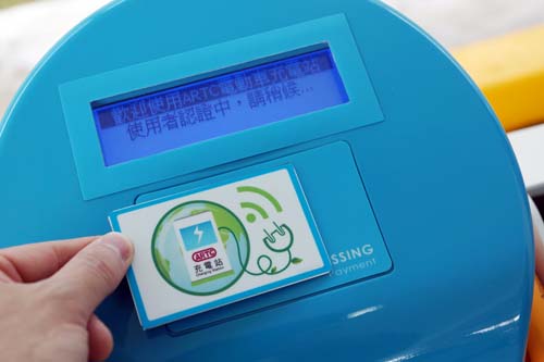 | 在國內首座「全規格電動車充電站」內,可利用專用儲值卡先行感應,然後再依照螢幕指示進行相關的充電操作步驟。 |