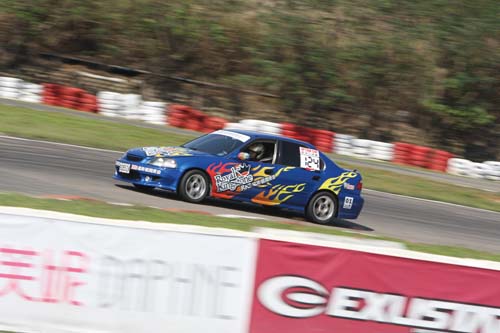 | 亞軍 方少澤 1:01.028 車號:140 車隊:DGR組 車型:K6 3D 原廠NA引擎設定,電腦都沒動,底盤就用STD的避震器,仰角及Toe in調整器都用HT鋐泰的料件,防傾桿就用日本進口件強化,原則上,就已練就自身技術為目標,希望能不斷地提升自己的能力,等技術練得差不多在考慮要不要強化動力部分,這樣成績才能有更顯著的進步吧。 |