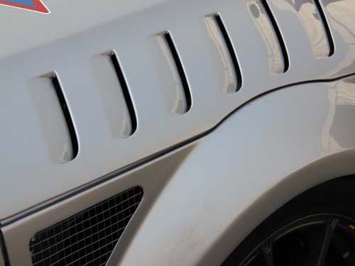 | 前保桿兩側的定風翼則是依據角度不同以適度提供車頭下壓力。 |