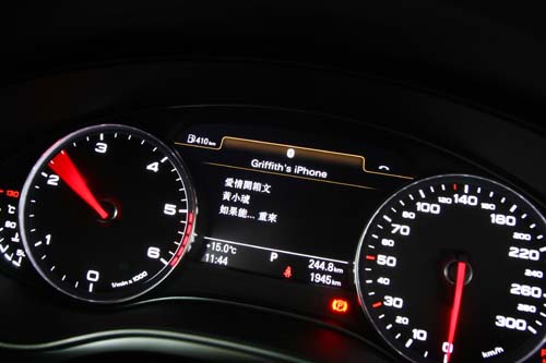 | 儀錶板內的彩色液晶螢幕十分細膩,MMI透過藍牙可與手機聯動,不僅可撥打電話,亦可播放手機內儲存的音樂。 |