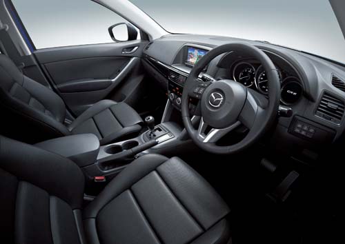 Mazda素有年輕有型的品牌形象,CX-5除了擁有賣相十足的外觀設計,CX-5的車室設計也稱得上新穎,尺寸大小恰到好處,十分適合台灣的用車環境。在動力方面,CX-5有汽油與柴油引擎兩種,汽油動力為2.0升的Skyactiv-G引擎,至於柴油動力則為最近發表Skyactive-D 2.2雙渦輪增壓引擎,這具柴油引擎採用了較低的壓縮比(14.0:1),Mazda工程師認為此舉將可以幫助燃燒效率,並且採用質輕散熱快的鋁合金引擎本體,讓整顆引擎降低重量達25kg之多。重要的噴油嘴則採用目前最盛行的電壓式設計,可以在一次燃燒行程中達成多次供油,供油量也更為精準。
