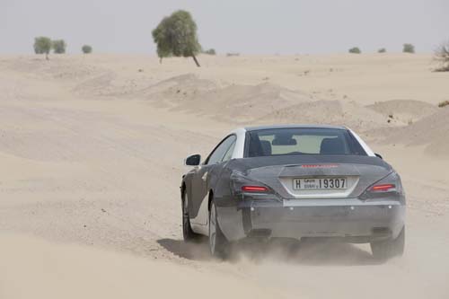 | 第6代全新大改款SL-Class的偽裝車型,目前正緊鑼密鼓地在全球各地區進行各項測試。 |