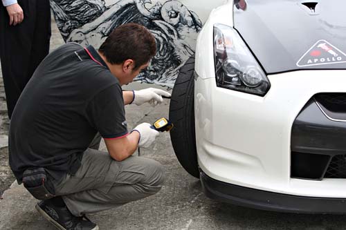 | 除了測試主角R35 GT-R之外,Apollo也動員了多位工作人員以及工作車來到現場,目的就是要為自家產品找出最佳的設定。 |