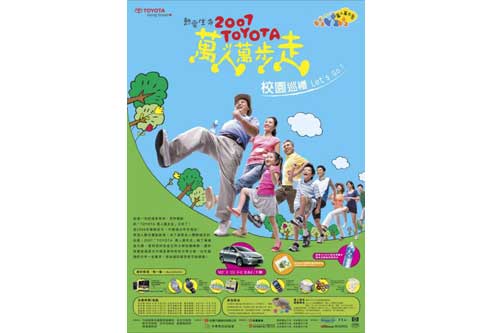 為推廣健康,「Toyota萬人萬步走」活動於’05年起結合政府單位、民間團體及所屬企業共同舉辦,兩年來吸引超過十五萬民眾熱情參加。而今年活動將於九月展開,全省共分有五個場次,預計能吸引超過十萬人報名參與,活動詳情請上網www.toyota.com.tw或致電0800-221-345服務中心。