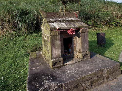 這條往灣潭的小徑路面品質也相當好,不過沿途陡上陡下不斷,經過無數彎道之後最後下滑到灣潭溪邊的小聚落。這條溪的水質雖然還不錯,但找不到適合紮營的位置,只有在一座土地公廟前有平坦的地面,還有水源,今夜就在此地與神明共處一夜。