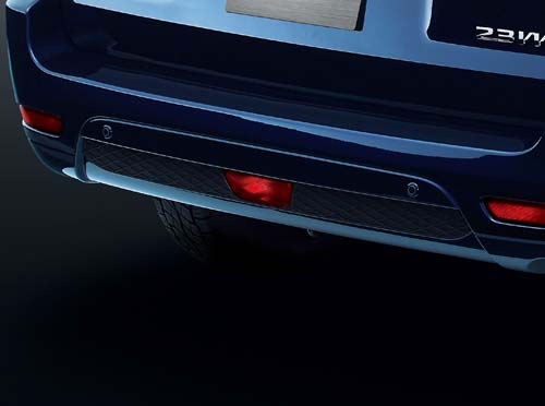 | 保桿上方除了反光貼片警示後車外,也設有倒車雷達提醒車主。 |