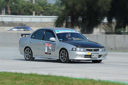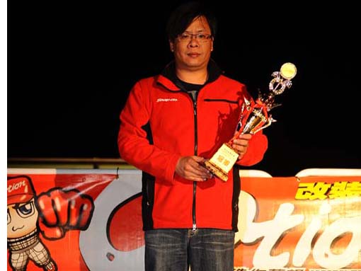| 冠軍車號:086 姓名:蕭炤和車隊:璟昌誠品車輛:Virage 成績: 反應時間/秒 經過時間/秒 總時間/秒 末速度km/h 第一回合 0.754 15.654 16.408 137.750 第二回合 0.384 15.478 15.862 148.350 之前蕭炤和以一輛換裝4G92 MIVEC引擎來參賽,不過成績並不理想,這次則是以另一輛搭載4G93引擎的Virage來雪恥,雖然腹內並未大幅改裝,但憑藉著上次的經驗,在這次賽事中完全發揮實力,如願以償的獲得本組冠軍寶座。 |
