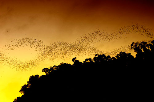 | 在詭譎多變的姆魯國家公園,200萬隻蝙蝠大軍外出覓食奇景。 |