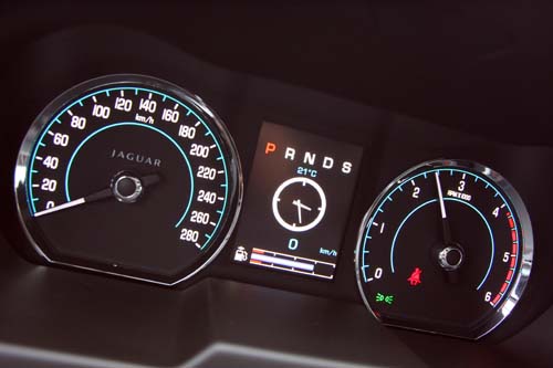 另外,2012年式小改款XF 2.2D也首度搭載Intelligent Stop/Start智慧型怠速自動啟閉系統,此套系統可結合Tandem Solenoid Starter串聯式啟動器,並利用第二儲備電力,讓駕駛人的右腳在釋放煞車踏板的瞬間(原廠所提供的作動反應時間為0.06秒)即可迅速自動啟動引擎,不僅可有效降低怠速時的廢氣排放量,同時也可提昇燃油效率達7%。我們在試車過程中也發現此套系統的作動反應的確相當迅速,通常在我們以正常速度釋放煞車踏板大約一半行程時,引擎即已迅速啟動,除了在啟動引擎瞬間仍無法避免抖動情形出現外,無論是紅燈暫停或是塞車時的停車再起步等情形來說都已毫無問題,並不會出現動力銜接上的困擾。