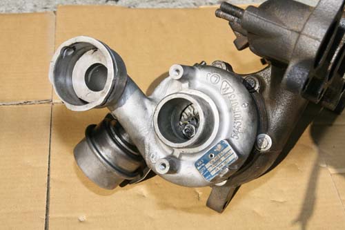 | 這顆是VW 1.9 TDI引擎的原廠渦輪,可以看出渦輪軸芯已經斷裂,據廣名渦輪表示這已經是這部車7年來更換的第4顆渦輪,原因是改裝後增壓值提高太多所導致。 |