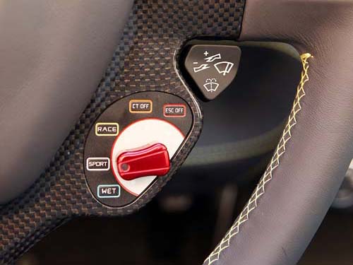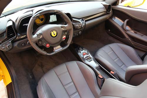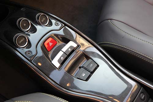 | 458 Spider內裝最明顯的差異之處就是側窗開關後方新增了活動硬頂與後擋風玻璃的控制開關。 |