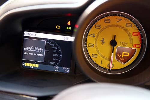 動力及機械配置並未有任何改變,仍是那具代號F136FB的4.5升V8引擎,可輸出570匹最大馬力及55.1kgm/6000rpm的峰值扭力,其中有80%的扭力在3250rpm的低轉速便可完全湧現,並搭配雙離合器七速自手排。由於458 Spider的車重只比雙門款多出50公斤,其0~100km/h加速成績只比458 Italia多出0.1秒而為3.5秒,甚至是0~200km/h加速亦僅有10.8秒,極速達到320km/h。為了讓鋁合金車架在展現高剛性與輕量化特點的同時並符合活動硬頂的要求,新設計的鋁合金車架簡化為10項零組件所組成,車身抗扭曲剛性增加的同時,前雙A臂、後多連桿懸吊也提供更為優異的作動幾何角度與貼地性。此外,避震器與458 Italia相同為SCM2(Magnetorheological)主動式磁流變液,而E-Diff電子差速器及F1-Trac動態穩定系統整合為一顆獨立電腦所控制,提供更快的反應時間,提供更高層次的駕駛樂趣。時間差不多了,在Poggio Enzo Ferrari紀念牌旁合影留念後,又到該出發的時刻了,筆直的太陽光將車艙曬得非常溫暖,要繼續開篷還是體驗一下關篷後的行車氛圍?不用多說,當那片車頂再次往後揚起的那一刻,沒有人不為那簡潔又極富創意的設計而讚嘆,Ferrari只花14秒就改變了我們的小世界。