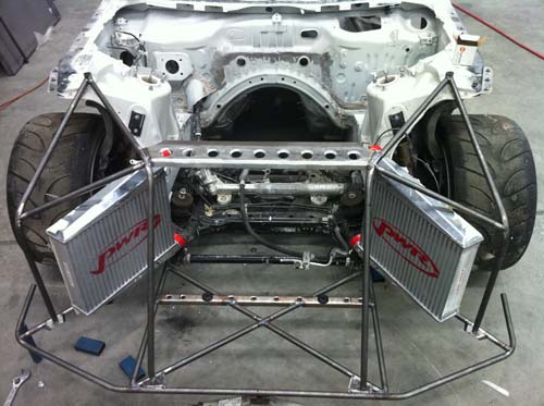| 車頭部份也完全切除水箱架並重新設計支架配置,為的就是日後安裝具備真正空力效果的外觀套件,為求速度極致無所不用其極! |
