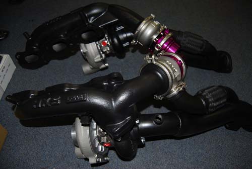 | HKS GT 800渦輪採用兩具運轉方向相反HKS GT 7460渦輪,最大的優點就在於兩具渦輪運轉時的平衡性,此外,頭段上的黑色Coating也是目前國內相當流行的改裝。 |