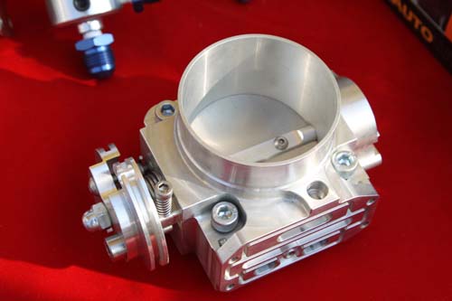 亞太鐘鈴為專精汽車引擎改裝品的精密加工廠商,以連續沖模設計、組立及沖床專業製品技術即經驗,設計生產多款汽機車鋁配件及週邊零件為主,近期推出配合本刊大鵬灣零四加速賽活動,因應許多K8車款以渦輪機大馬力參賽趨勢,特開發其外掛渦輪適用的加大節氣門,其精密的機件設計,確實對應引擎瞬間拉轉加速需求,特以7075鋁合鋼材質打造其節氣門翼片,有效提供絕佳氣密效果,充分滿足大馬力渦輪機大量進氣吸氣量。