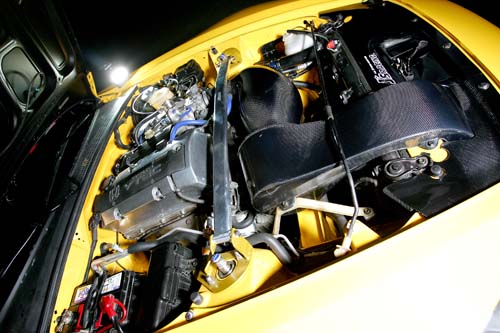 而該車最屌地方除了外觀上那隻碩大的尾翼外,拆個精光加上防滾架插得密密麻麻的法拉利,在台灣哪裡看得見。Challenge就是如此,除了上述內裝門飾板等全部都大幅採用輕量化材質外,Challenge也廢除電子系統一大堆的方向盤,採用330mm單純賽車用的三幅方向盤。而後方的檔位撥桿也換上加大型的碳纖維製品。座椅部分也無需考慮舒適性的問題,兩張固定式OMP筒椅可提供駕駛面對側向G值時最牢固的靠山。另外副駕駛座前方的滅火器,則是車輛遇到火勢時,牽動偵察系統後會自動噴撒來消除引擎室內的火勢,純技競的設定其實並不單純是要快,而是要快速的保護駕駛者的人生安全為基礎打造。