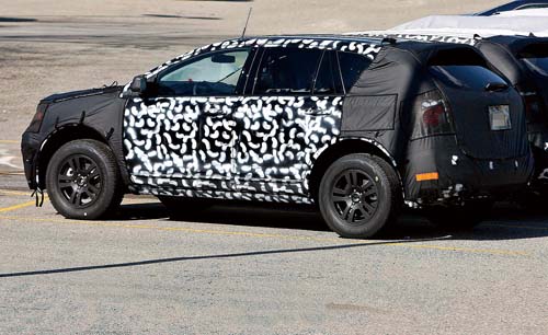 這部2011 Model的Ford Edge採用與 Lincoln MKX相同的底盤設定,從車頭的偽裝當中能依稀看出碩壯的橫柵式水箱護罩與進氣壩的雛型,車尾燈則鑲有鍍鉻飾條,車身鈑件並未有過多偽裝,高腰線的設計頗有現代美式貨卡的設計元素。而內裝的進化也是新年式Edge的重點,因為當我們的狗仔趁試車員肚子痛上廁所時貼近偽裝車,發現內裝經過大幅度偽裝,被將了一軍的狗仔只好偷聽試車員的談話,得知New Edge將搭載一具與 Lincoln MKX及MKS相同的3.5升雙渦輪增壓引擎,而4缸的渦輪引擎也在考慮清單之中,看樣子性能與節能的蹺蹺板在這些中大型CUV車型上還真難取捨。