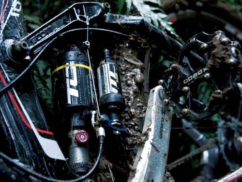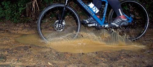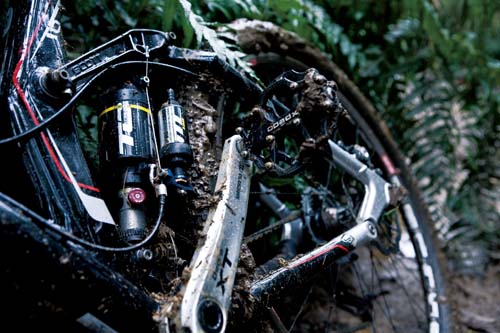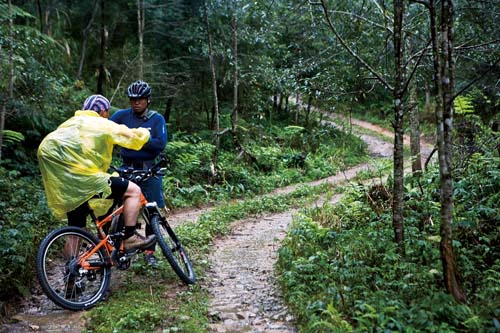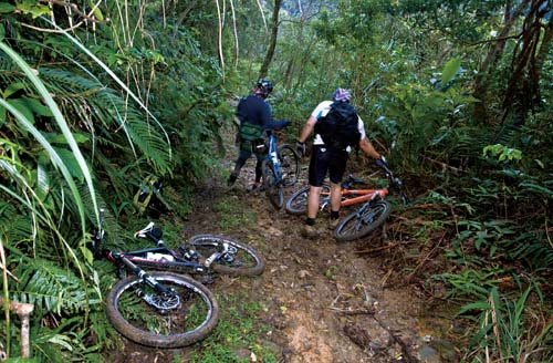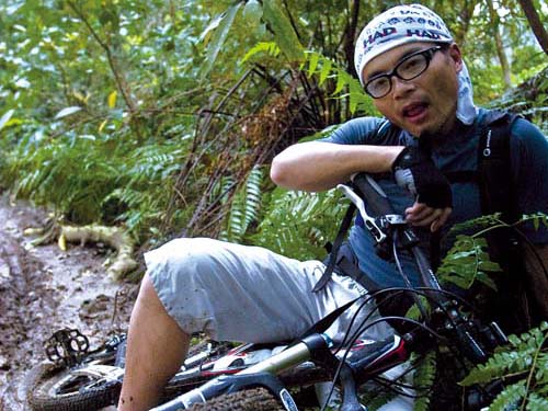 | 滑倒乃騎乘登山車的常事,不過這裡的泥巴深厚,人車倒是都不易受傷。 |